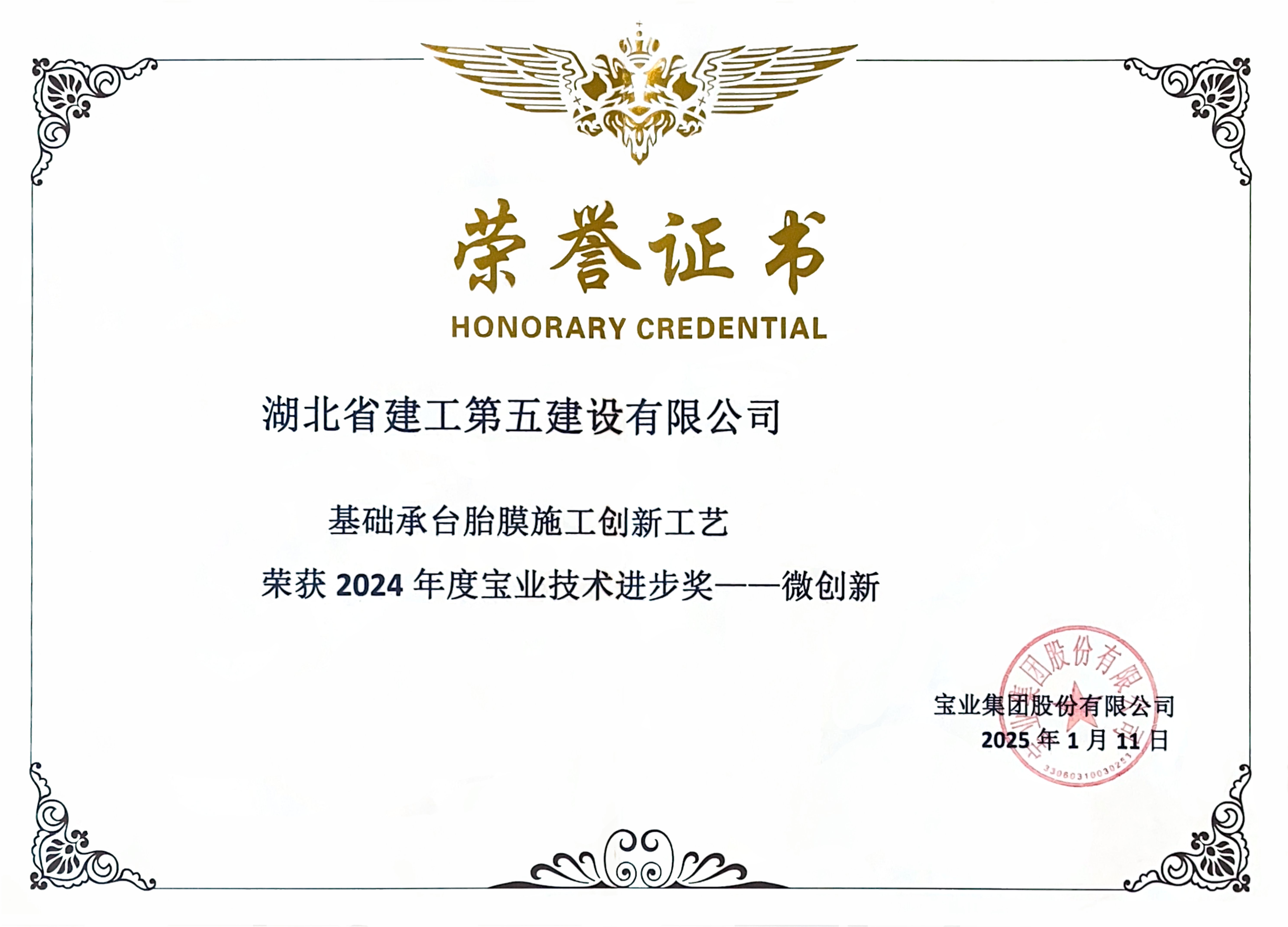 • 湖北省建工第五建設有限公司榮獲寶業集團2024年度寶業技術進步獎微創新獎